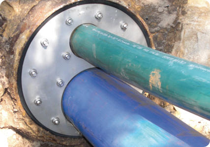 Pressio ® Ringraumdichtungen sind die sicherste Variante zur Ringraumabdichtung von Mauerdurchführungen bei Rohrleitungen. Die Dichtungen sind grundsätzlich dicht gegen drückendes Wasser mit Druckscheiben aus Edel- stahl V2A (alternativ V4A) und extra weichem Elastomer. Pressio ® Individual Ringraumdichtungen werden speziell nach Kundenwunsch angefertigt. Sonderausführungen für die unterschiedlichsten Rohrformgebungen sowie u. a. exzentrische Durchführungen mehrerer Rohre sind unsere Spezialität.